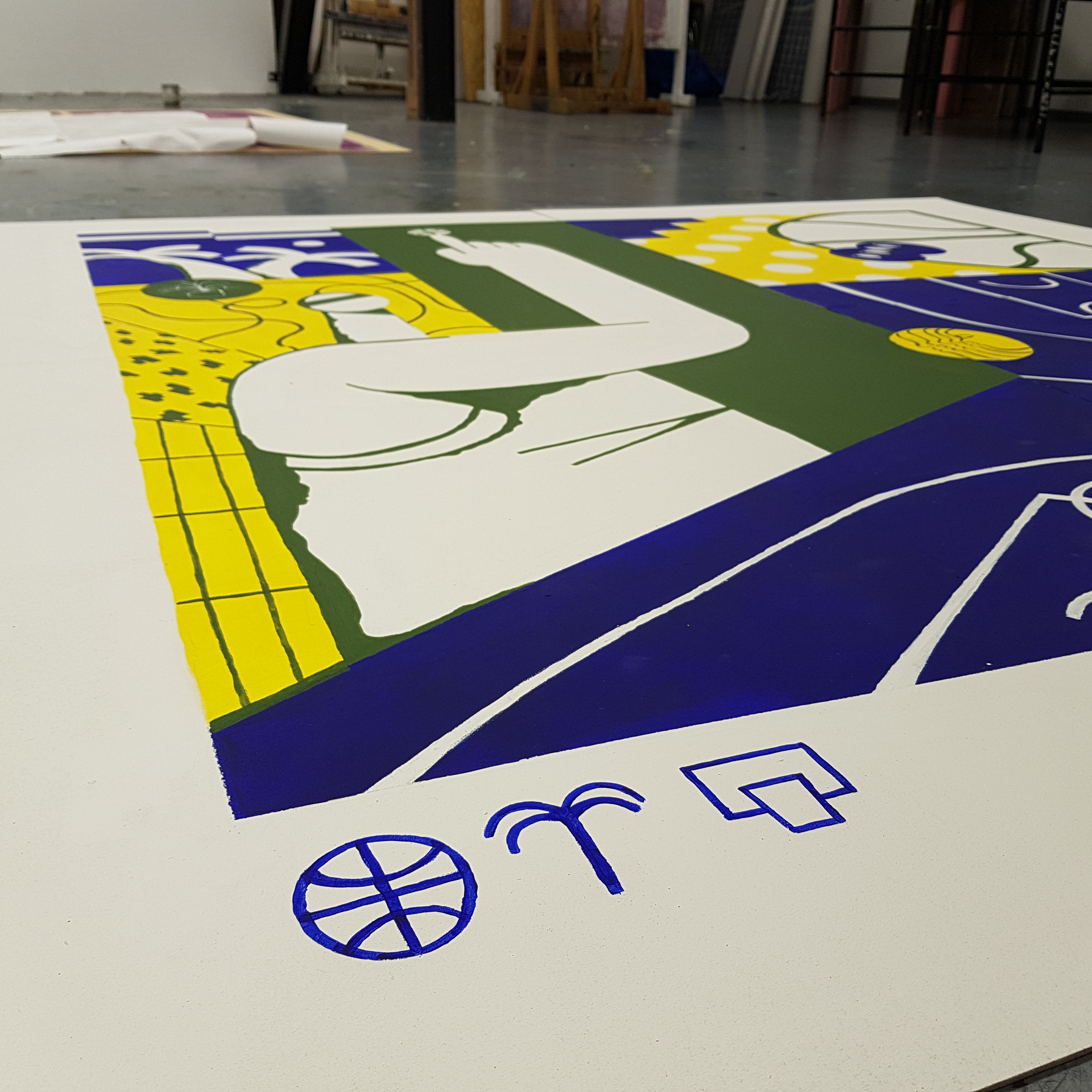 A two by two square meters big mural for the exhibition of the Living Room Gallery.