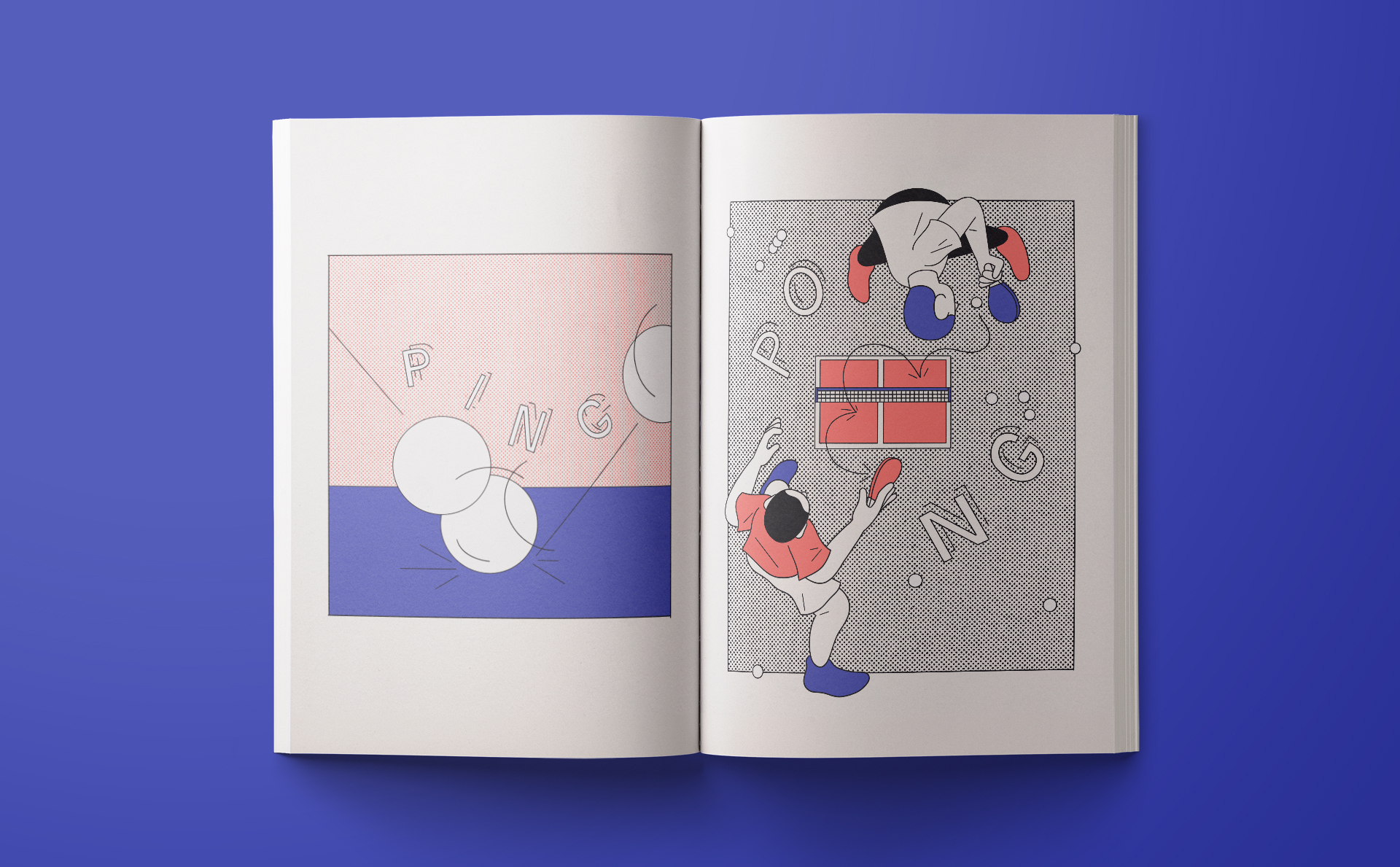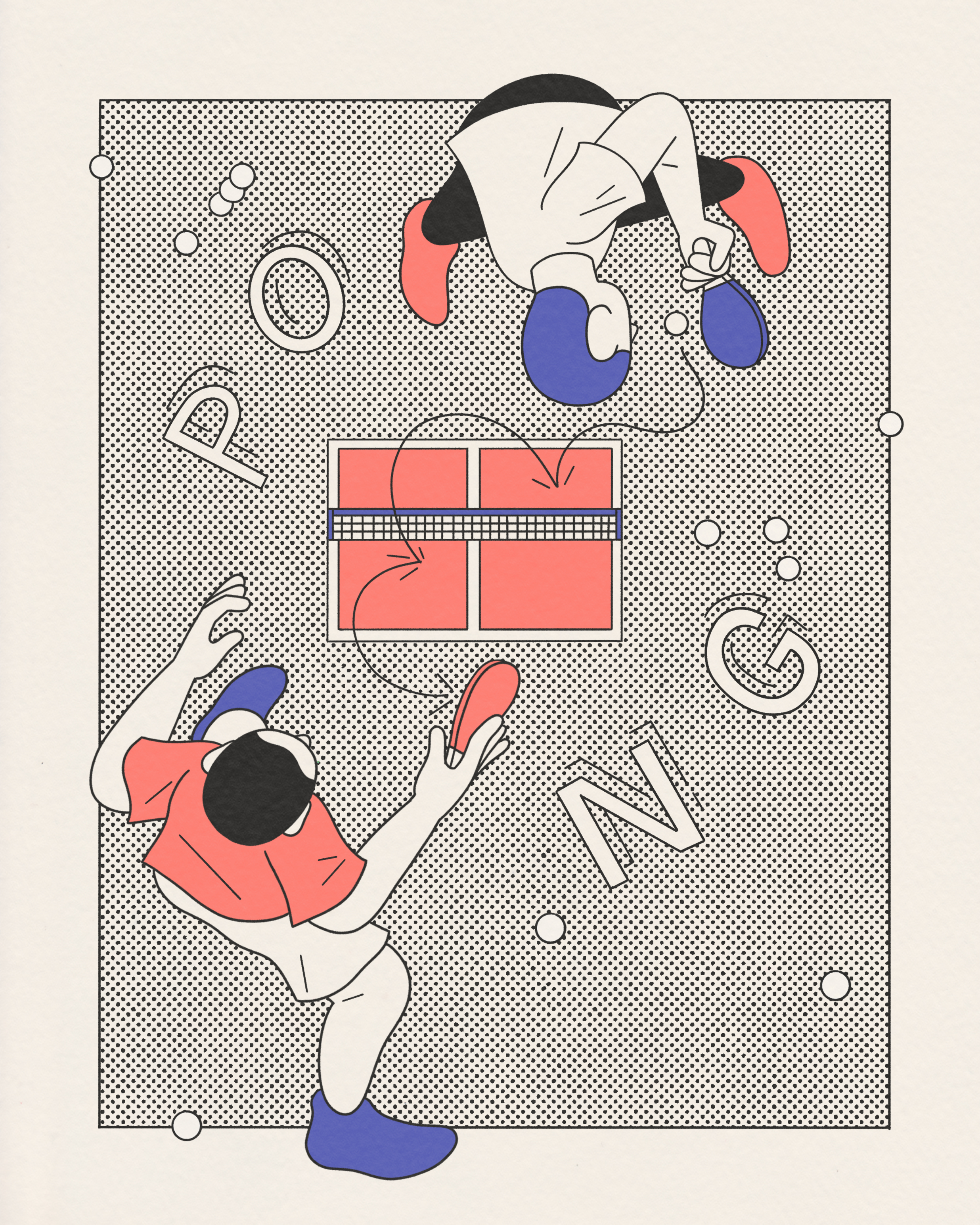 A graphically illustrated approach to ping pong and anger management. Trying to translate the sport and it’s motion through simple and clean shapes.